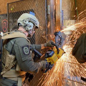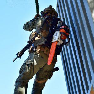 The Transporter provides excellent stability and retention during demanding operations such as vessel boarding, search and seizure (VBSS), fast roping, ladder climbs, compound infiltration, search warrant execution, and urban room clearing. Its rigid construction and adjustable mounting system keep tools secure during movement while enabling quick access and re stowage when required.