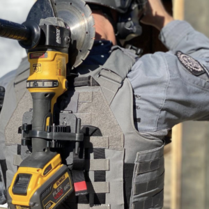 Built around the Pac Tool locking system, the mount uses a rigid multi hole mounting plate that integrates seamlessly with Bushido Tactical’s compact collapsible breaching tools, including the collapsible sledge hammer and pry bar. The system is also compatible with other tools of similar diameter, including select DeWalt battery powered tools equipped with Brokos diamond cutting blades.