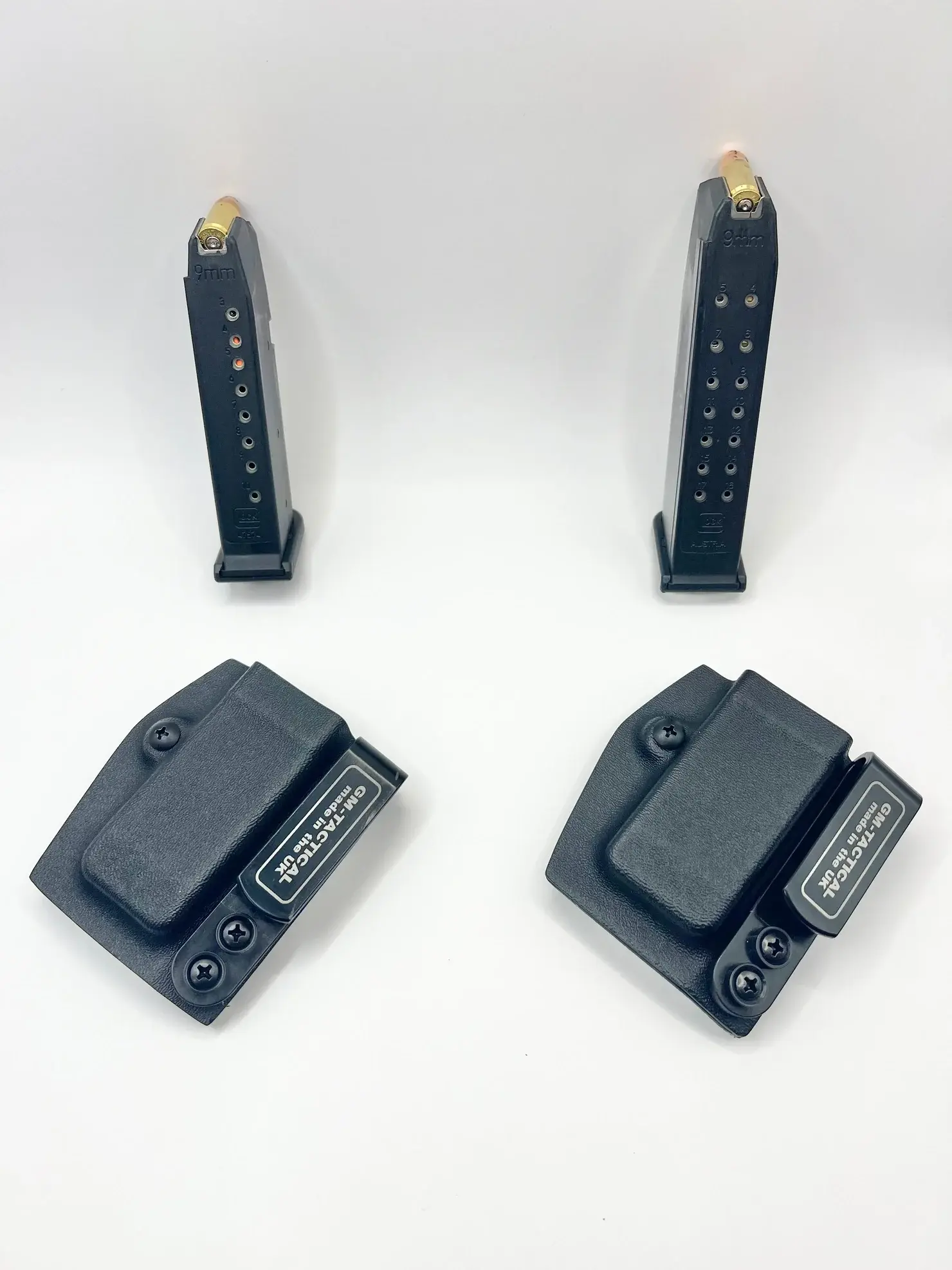 The GM-Tactical Inside the Waistband (IWB) Single Magazine Carrier is designed to provide discreet carry with minimal bulk. Built specifically for single stack Glock 9mm magazines (Single Stack 43X/48), it offers secure retention while maintaining a low-profile footprint for everyday or professional concealed carry.