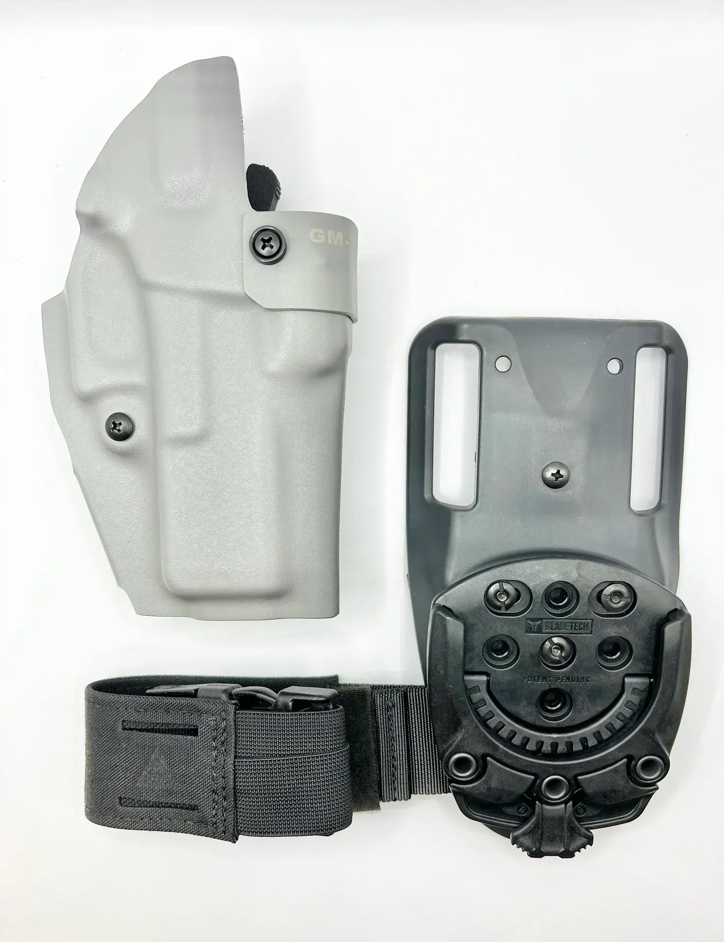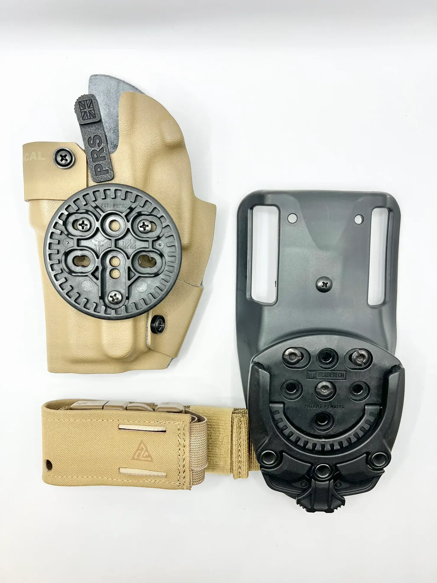 Supplied with the Bladetech Tek-Mount system, this two-part setup consists of a Receiver and a 360 Insert Disk™. It delivers the same speed and ease of use as the Safariland® QLS, with the added benefit of instant cant adjustment without the need for screws or posts.