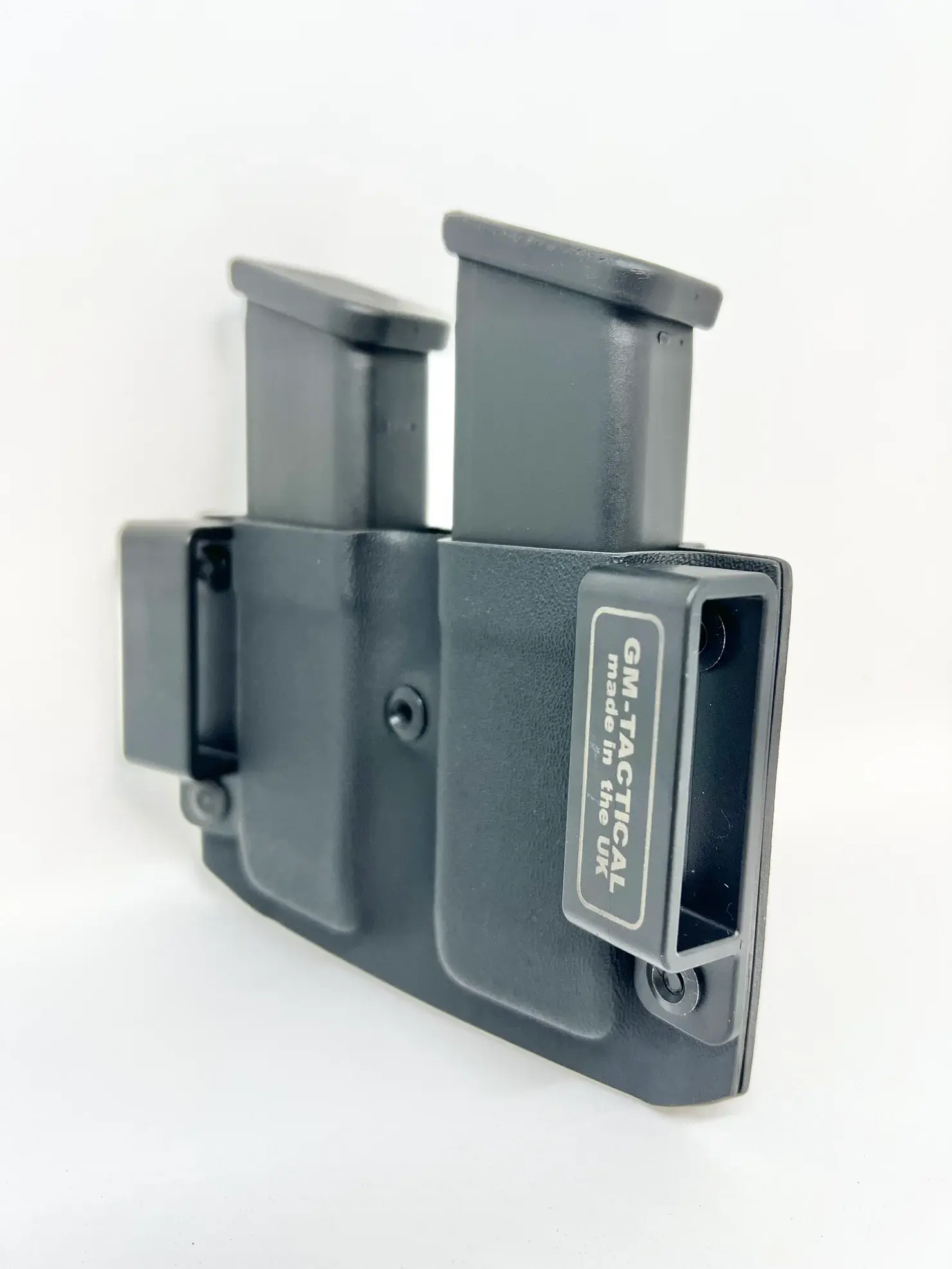 The GM-Tactical Q-Mag Double Magazine Carrier (Single Stack 43X/48) is designed to position spare magazines on the hip in an optimal location for rapid access and efficient reloading. Built for speed and consistency, it supports a smooth, unobstructed draw while keeping magazines stable and immediately accessible under stress.