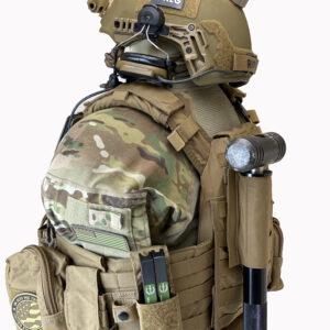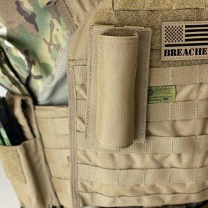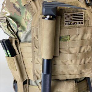 Unlike rigid PVC tube systems, this pouch folds down when not in use, significantly reducing bulk and improving comfort and mobility. The soft shell outer sheath provides flexibility and ease of movement, while a rigid MOLLE backing offers the necessary support to securely carry breaching tools during dynamic operations.