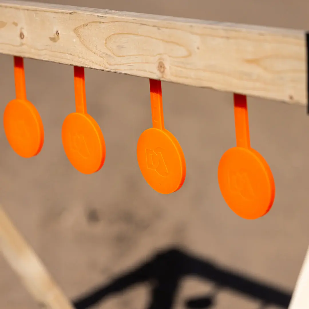 Manufactured from premium lightweight, weatherproof materials, the 4 inch gong target is built to withstand thousands of rounds in both indoor and outdoor environments. Its bright fluorescent orange construction provides excellent visibility at distance, making it ideal for precision work, transition drills, and reactive training.