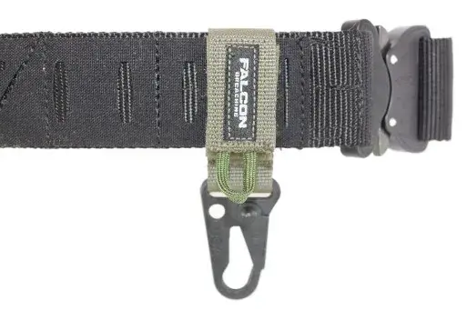 A US made steel HK style hook offers secure retention, while an integrated sewn loop of 550 paracord provides the option for a secondary attachment point or tether. The Accessory Clip is designed to fit battle belts up to 2 inches wide, making it compatible with a wide range of duty and tactical belt systems.